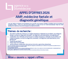 Pour l’édition 2026, l’appel d’offres « AMP, médecine fœtale et diagnostic génétique » porte sur les thèmes suivants :