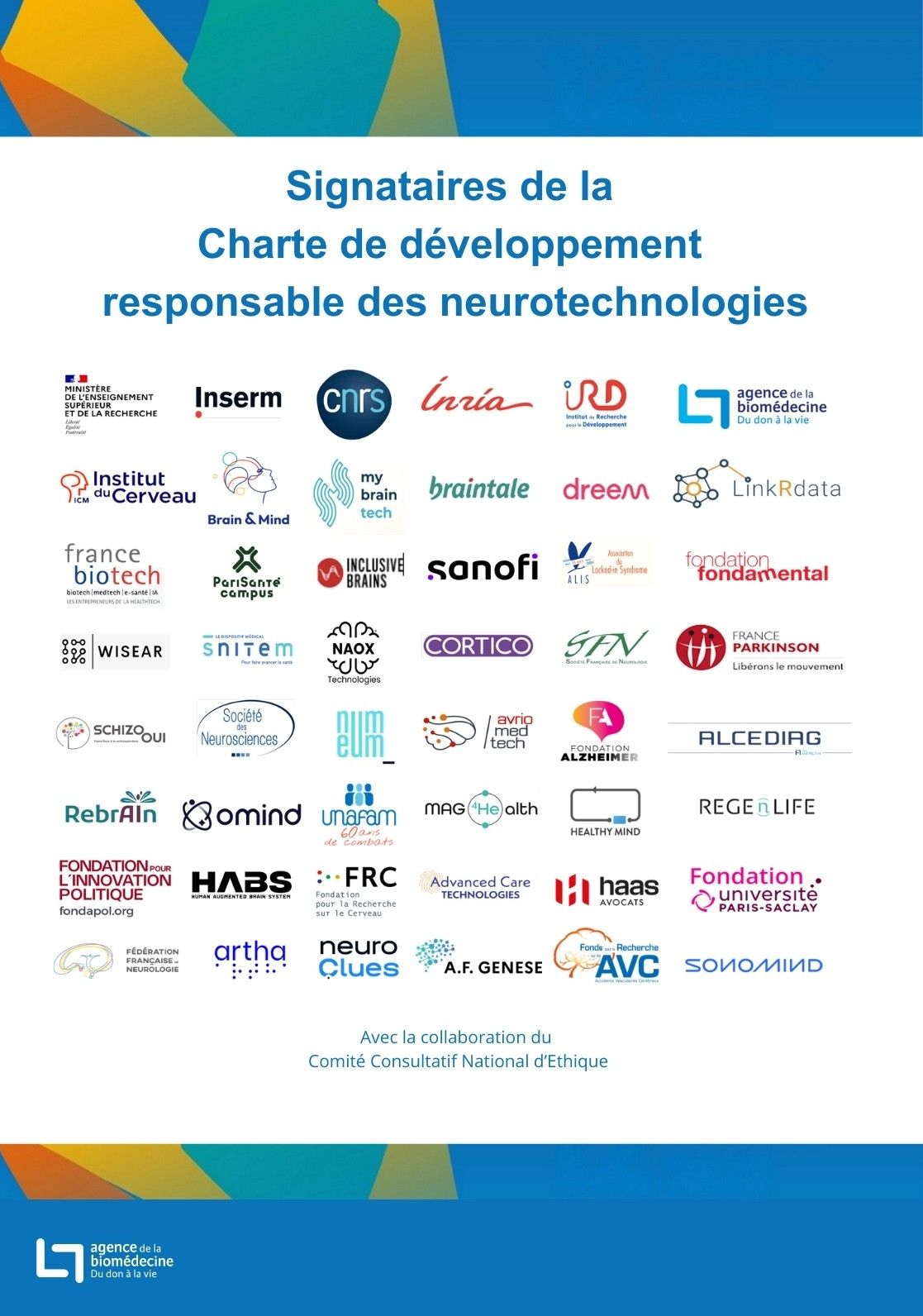 L’Agence de la biomédecine pilote, depuis janvier 2025, la Charte de développement responsable des neurotechnologies initiée par la Direction Générale de la Recherche et de l'Innovation (DGRI) du Ministère de l’Enseignement Supérieur et de la Recherche (MESR). Ce dispositif vise à accompagner le développement maîtrisé et éthique des neurotechnologies pour l’ensemble de leurs applications, tout en protégeant les citoyens face aux enjeux nouveaux liés à ces innovations.