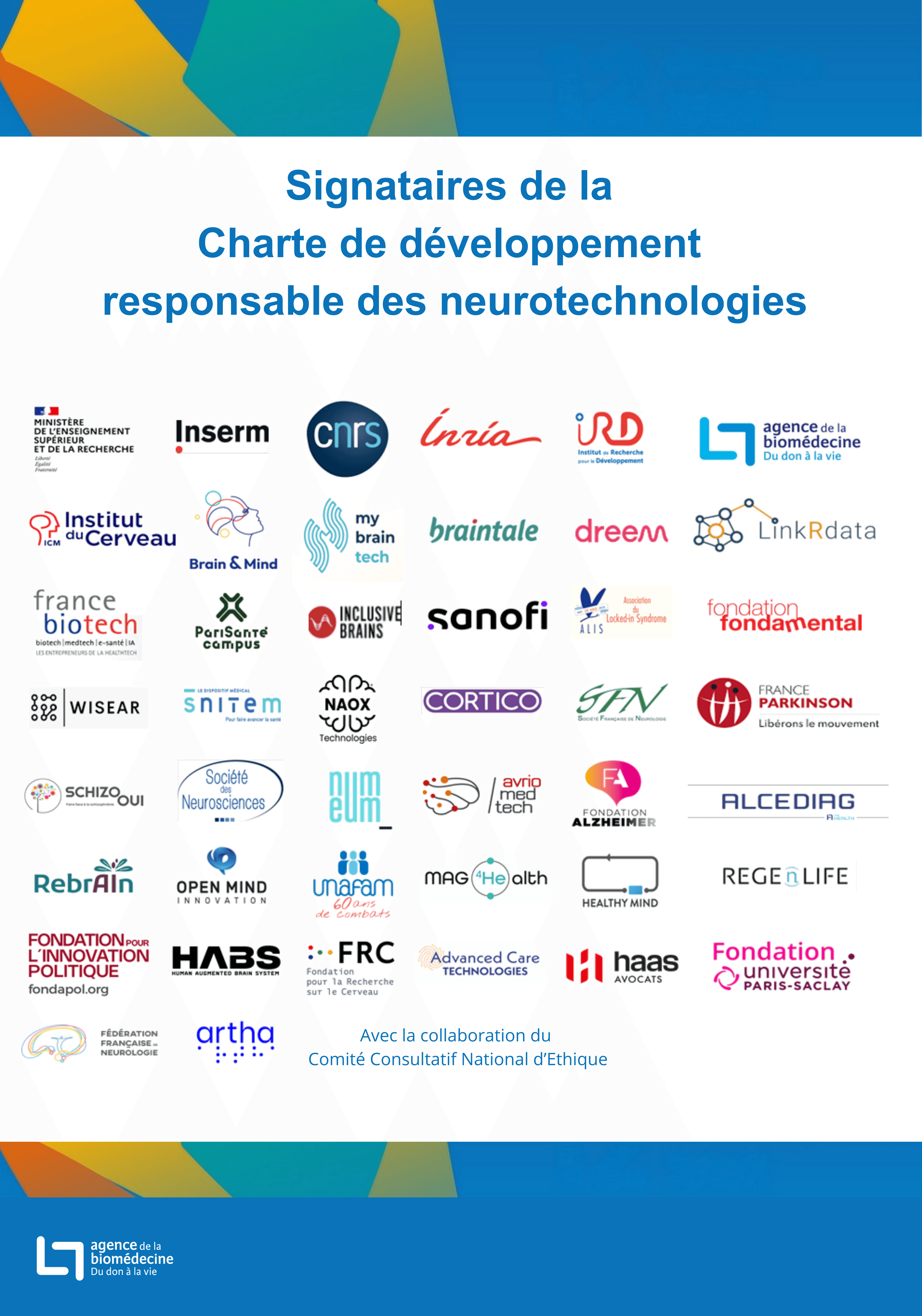 L’Agence de la biomédecine pilote, depuis janvier 2025, la Charte de développement responsable des neurotechnologies initiée par la Direction Générale de la Recherche et de l'Innovation (DGRI) du Ministère de l’Enseignement Supérieur et de la Recherche (MESR). Ce dispositif vise à accompagner le développement maîtrisé et éthique des neurotechnologies pour l’ensemble de leurs applications, tout en protégeant les citoyens face aux enjeux nouveaux liés à ces innovations.